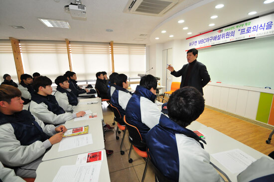 ‘프로의식을 갖자’라는 주제로 2시간동안 진행된 특강에서 허구연 해설위원은 학생들에게 ‘공부하는 야구선수’가 갈 수 있는 다양한 성공의 길에 대해 강연하며 공부의 필요성의 알렸다.