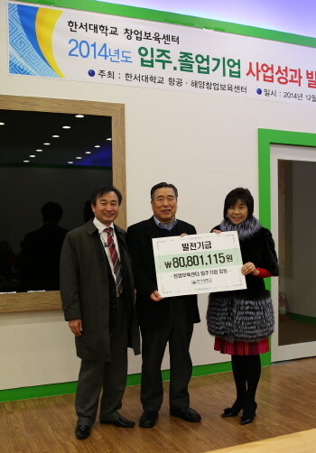 이번에 전달된 발전기금은 8100만 원으로 지난해보다 2000만원이 늘어난 금액이다. 올해 사업성과우수업체로 선정된 <내추럴 그린푸드>, (주)세진, <스펙코어>, <익스팟플라이어>, <아일랜드> 등 5개 업체는 이 자리에서 성공사례 발표회도 열었다.