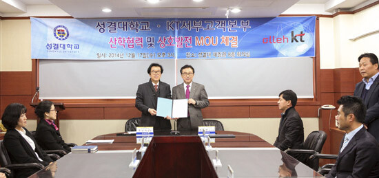 성결대는 17일 대학본부에서 KT서부고객본부(본부장 장희엽)와 산학협력을 위한 업무 협약을 체결했다. 이번 협약은 성결대와 KT서부고객본부의 산학협력과 상호 발전을 위한 협력관계 수립을 목적으로 하고 있다.