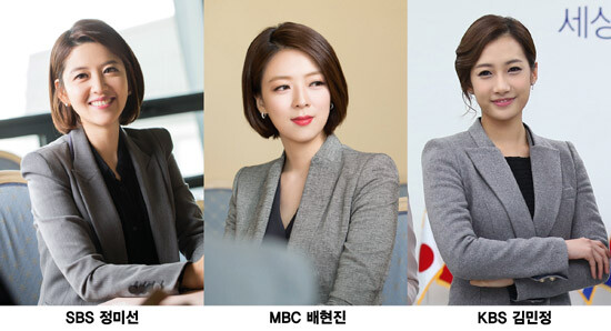 KBS 뉴스9 김민정, MBC 뉴스데스크 배현진, SBS 8시 뉴스 정미선