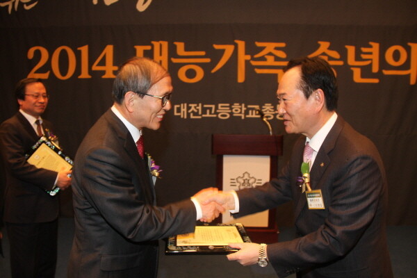대전고등학교 총동창회는 17일 대전 유성 리베라호텔에서 2014총동창회 송년의 밤을 개최했다. 교육부문에 충북대 윤여표 총장과 송하영 한밭대 총장(52회)이, 행정부문에 권선택 대전광역시장(53회)이 올해의 대능인상을 수상했다.