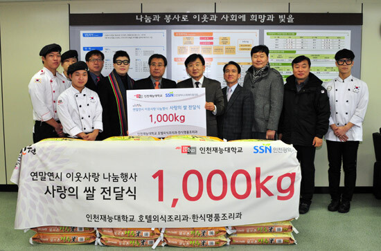 인천재능대 호텔외식조리과와 한식명품조리과는 지난 10월 28일부터 29일까지 광화문에서 열린 ‘제2회 한식의 날 대축제’에서 '한식! 한문화의 중심에 서다'라는 슬로건에 맞춰 작품전을 열고 축하 화환 대신 쌀을 후원받았다.