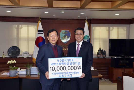 대구한의대 변창훈 총장은 "기부자의 소중한 뜻이 빛날 수 있도록 대학 발전과 후배들의 장학기금으로 소중히 사용할 것"이라고 말했다.