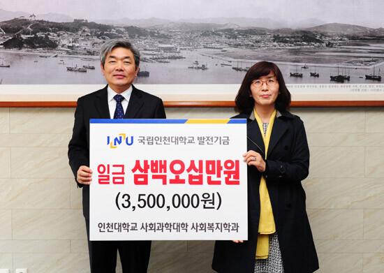 송다영 사회복지학과 학과장은 “사회복지학과가 2014년 단과대학 및 학과평가에서 인문사회계열 중 연구영역 1등으로 평가받아 대학으로부터 받은 포상금을 모은 것”이라며, “학교 발전에 조금이라도 도움이 됐으면 하는 교수들의 마음을 모았다”고 밝혔다.