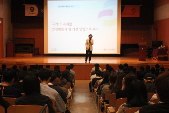 또한 '원래 지상에는 길이 없었다, 누군가가 먼저 걷기 시작하자 길이 되었다'라는 루쉰(Lu Xun) 작가의 말을 인용하며, "여러분들이 양성평등과 일·가정의 양립을 정착시킨 세대로, 가족친화적 경영기법으로 세계에 대한민국을 알릴 수 있는 세대가 되길 바란다"고 당부했다.