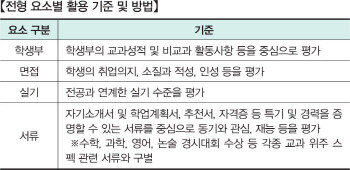일부학과에서만 면접 시행, 학생부 성적 100% 반영 권장