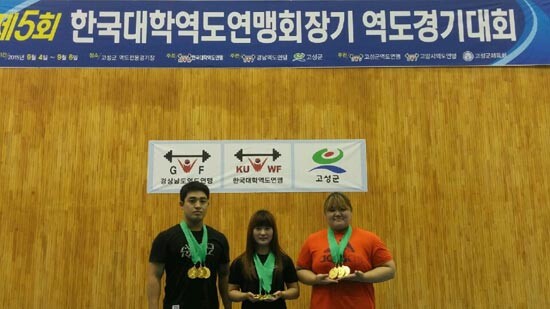이번 대회에서 경남대 신승규 씨는 남자 77㎏급에 출전해 인상(130㎏), 용상(150㎏), 합계(280㎏)에서 모두 1위를 차지해 3관왕에 올랐다. 서연주 씨도 여자 75㎏급에 출전해 인상(80㎏), 용상(105㎏), 합계(185㎏)에서 모두 1위를 차지해 3관왕에 오르는 영광을 안았다. 김소현 씨는 여자 48㎏급에 출전해 용상(82㎏)과 합계(140㎏)에서 각각 1위를 차지해 2관왕에 올랐다. 인상에서도 58㎏을 성공시켜 은메달을 따냈다.