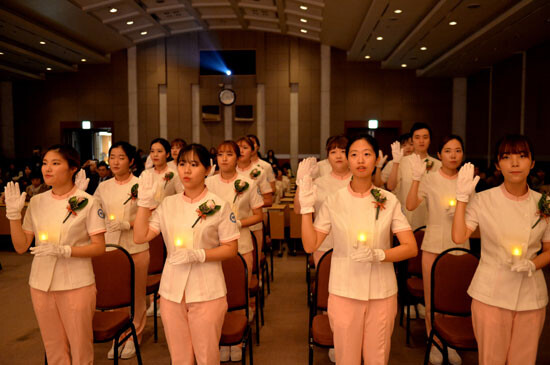 나이팅게일 선서식은 간호학부 학생들이 기본 이론교육을 마치고, 본격적인 임상실습을 나가기 전 간호인으로서의 사명감과 봉사와 희생정신을 일깨워 주기 위해 여는 행사다.