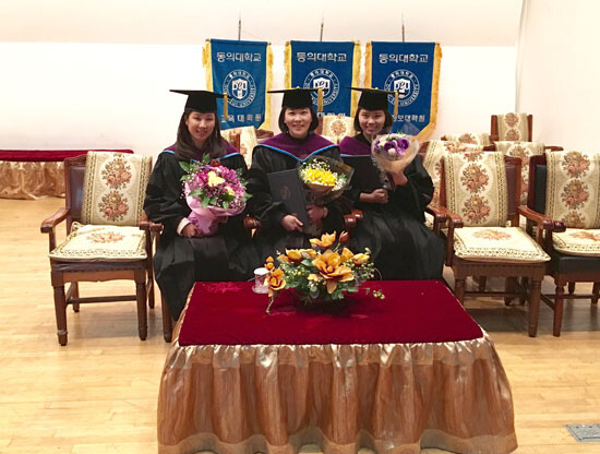 동의대학교(총장 공순진)가 세계 최초로 치위생학박사 3명을 배출했다. 주인공인 지난 19일 학위를 수여받은 대학원 보건의과학과 조문미, 고효진, 김예황 박사.
