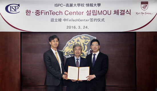 고려대학교 정보대학(학장 유혁)은 중국 국영투자기관 ISPC(회장 Sam Lin)와 함께 한-중 핀테크센터 설립을 통한 금융산업의 선진화를 위해 유기적인 업무협력체계를 구축하고자 양해각서(MOU)를 체결했다.