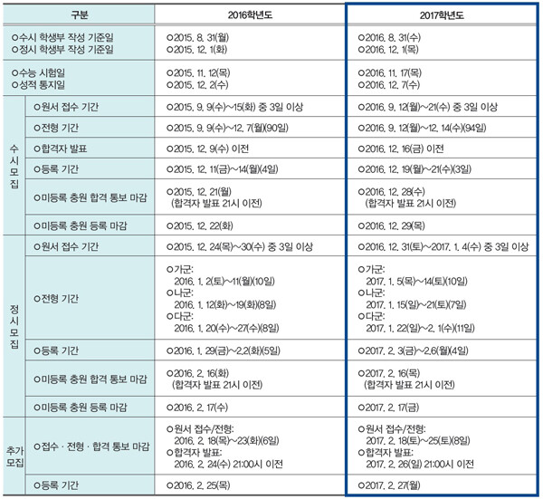 Q. 올해 고3이 된 학생입니다. 2017학년도 대학입학 일정은 어떻게 되나요?