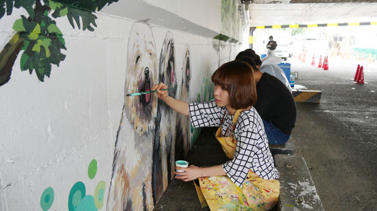 학생들은 이곳에 천연기념물로 지정된 경산의 삽살개와 경산시가 전국에서 가장 많이 재배하는 대추나무 등 지역의 상징물을 그려 넣어 어둡고 음습한 지하도를 밝고 의미 있는 공간으로 탈바꿈시켰다.