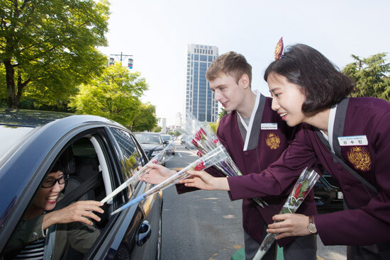 전북대 학생홍보대사들은 이날 오전 8시부터 대학 정문 등에서 출근하는 교수 및 대학 구성원들에게 장미꽃을 선물하며 감사의 마음을 전했다.