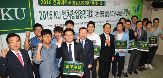 건국대학교(총장 송희영) 창의관에서 건국대 창업지원단의 창업선도대학 육성사업의 하나로 '2016 KU벤처창업경진대회 및 대한민국 창업리그 전국예선' 시상식이 지난 31일 열렸다.