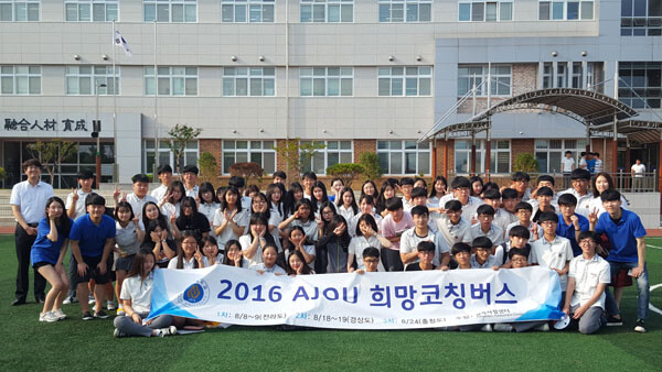 아주대는 8월 한 달간 대학 정보 소외지역 고교를 대상으로 ‘2016 AJOU 희망코칭버스’ 프로그램을 운영했다. AJOU 희망코칭버스는 아주대 입학사정관과 재학생들이 정보 소외 지역 고교를 방문해 대학에 대한 실질적인 정보를 제공하는 프로그램이다. △입학사정관 학생부종합전형 특강 △일대일 맞춤 입시 상담 △고교 교사 대상 모의서류평가 △재학생과 함께하는 전공 토크콘서트 △전공체험 등이 진행됐다.
