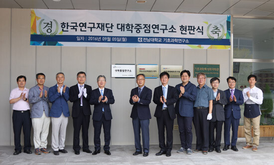 [대학저널 유제민 기자] 전남대학교(총장 지병문) 기초과학연구소가 한국연구재단의 '2016 대학중점연구소 지원사업'에 선정돼 지난 5일 전남대 기초과학특성화과학관에서 현판식을 가졌다.