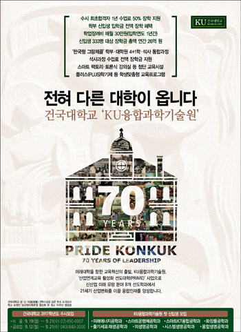건국대는 ‘산업연계 교육 활성화 선도대학’(PRIME) 사업 선정에 따라 기술융합 수요에 대처하고 미래 성장산업을 이끌 인재를 양성하는 ‘KU융합과학기술원’을 신설하고 전체 모집정원 333명 가운데 이번 수시에서 총 193명을 선발한다.