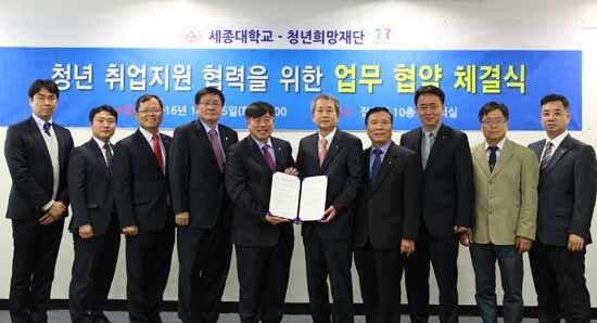[대학저널 이원지 기자]세종대학교(총장 신 구)가 재단법인 청년희망재단(이사장 박희재)과 청년실업문제와 인력난 해소를 위한 해법을 함께 모색하기로 했다.