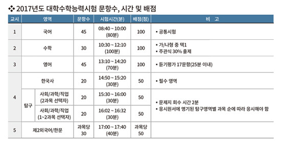 ▶ 수능 시간표, 영역별 출제 문항수를 확인하자!