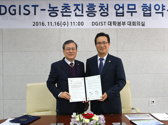 [대학저널 신효송 기자] DGIST(총장 신성철)가 16일 DGIST 대학본부에서 농촌진흥청(이하 농진청)과 업무 협약(MOU)을 체결했다.