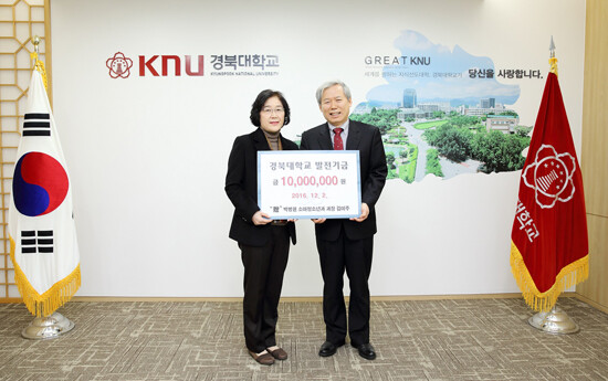 [대학저널 신효송 기자] 경북대학교(총장 김상동) 의과대학 75학번 박정태 박병원 대표원장과 동 학과 77학번 김미주 박병원 소아청소년과 과장이 2일 김상동 경북대 총장을 방문해 후배들을 위해 써달라며 각각 발전기금 1000만 원을 전달했다.