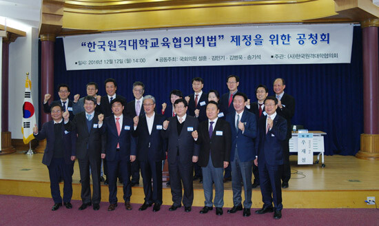 [대학저널 유제민 기자] 한국원격대학교육협의회법(이하 원대협법) 제정을 위한 공청회가 12일 국회의원회관 제1소회의실에서 열렸다. 이번 공청회는 법안의 대표 발의자인 교육문화체육관광위원회 소속 김병욱 더불어민주당 의원을 비롯해 설훈(국민의당), 김민기(더불어민주당), 송기석(국민의당) 의원 등이 주최했으며 (사)한국원격대학협의회(이하 원대협)가 주관했다.