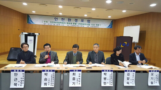 [대학저널 이원지 기자]인천환경원탁회의(의장, 최계운 인천대 교수)는 지난 15일, 인천대에서 '인천환경원탁회의 복원 및 몽골 사막화방지사업 10년 리뷰'라는 주제로 '인천환경포럼'을 지역주민, 시민사회단체, 환경원탁회의 위원, 관련 전문가 등 70여 명이 참석한 가운데 개최했다.