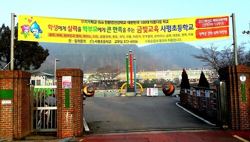 사평초는 현수막에서 무지개학교와 ECO 친환경건강학교, 대한민국 100대 아름다운 학교로 지정된 점을 강조하고 입학과 전학 때 장학금 30만원 지급을 약속했다.