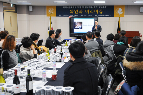 [대학저널 유제민 기자] 사이버한국외국어대학교(총장 김인철)는 창의적 인재 양성을 위한 교양교육의 일환으로 지난 4일 사이버관에서 와인 특강을 열었다.