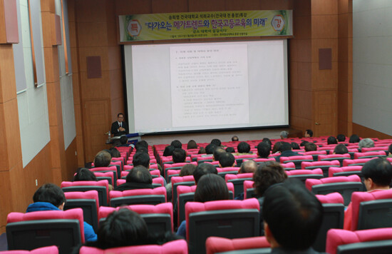 [대학저널 유제민 기자] 한국영상대학교(총장 유재원)가 8일 한국영상대 본관에서 교직원을 대상으로 송희영 건국대 석좌교수(건국대 전 총장)를 초청해 '다가오는 메가트렌드와 한국고등교육의 미래'라는 주제로 특강을 실시했다.