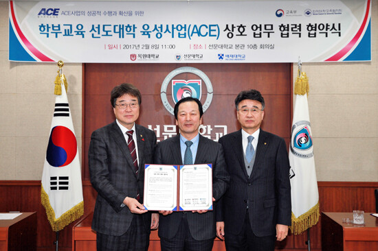 [대학저널 유제민 기자] 선문대학교(총장 황선조)와 목원대학교(총장 박노권), 배재대학교(총장 김영호)는 8일 선문대 10층 대회의실에서 학부교육 선도대학 육성사업(이하 ACE 사업) 업무협약을 맺었다. 업무협약은 ACE 사업의 성공과 확산을 위해 추진됐다.
