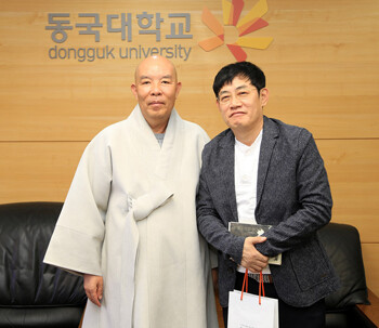 이 씨는 동국대 연극영화학과 79학번으로, 전임 최진수 동문회장에 이어 최근 신임 회장으로 선출됐다. 이에 지난 7일 한태식 총장을 방문해 인사를 나누는 자리를 가졌다.