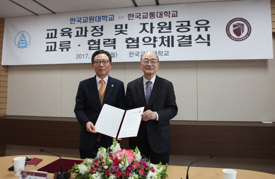 [대학저널 유제민 기자] 한국교통대학교(총장 김영호)와 한국교원대학교(총장 류희찬)는 13일 한국교통대 증평캠퍼스에서 양 대학의 상생 발전과 교육과정 및 자원공유 등에 관한 업무협약을 충청권 최초로 체결했다.