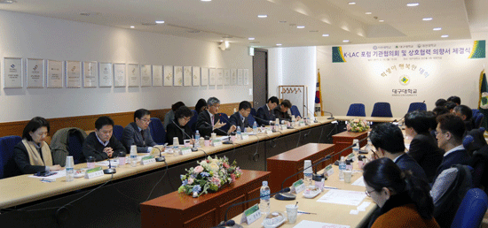 대구대는 13일 대구대 성산홀(본관) 2층 대회의실에서 가천대, 대전대 등 협력 대학과 함께 'K-LAC 포럼 기관협의회'를 열고 상호협력 협약을 체결했다.