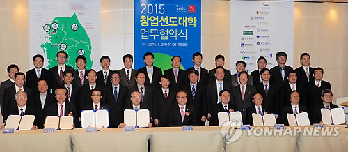 중소기업청은 2011년 '창업선도대학 육성사업'을 도입한 뒤 일정 규모의 창업선도대학을 선정하고 있다. '창업선도대학 육성사업'은 대학에 기술창업 플랫폼을 구축하고 3년 미만의 초기우수창업자(석·박사/교수/연구원 등)를 발굴, ▲창업교육 ▲사업화 ▲후속지원 등 창업 전 단계를 지원하는 프로그램이다.