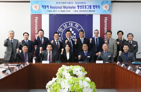 [대학저널 유제민 기자] 한남대학교(총장 이덕훈)는 28일 한국지엠(주)과 '자동차 지역 마케터(Regional Marketer) 양성프로그램 협약식'을 가졌다. 이날 협약식에는 이덕훈 한남대 총장을 비롯해 한국지엠 서부총괄본부장 황재섭 상무 등이 참석했다.