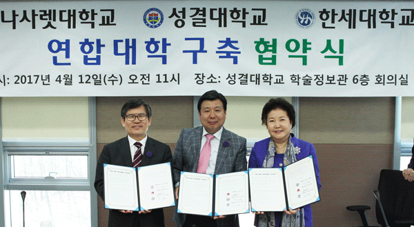 [대학저널 정성민 기자] 대학가에 연합대학 구축 바람이 불고 있는 가운데 성결대학교(총장 윤동철)도 나사렛대학교(총장 임승안), 한세대학교(총장 김성혜)와 연합대학을 구축한다.