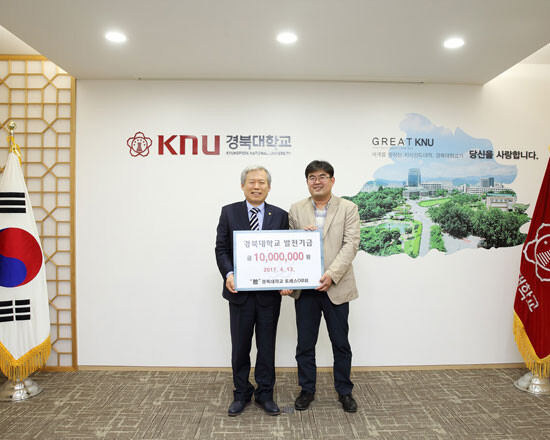 [대학저널 신효송 기자] 경북대학교(총장 김상동) 클래식기타 합주 동아리 '토레스' OB회(회장 권종철)가 13일 경북대에 발전기금 1000만 원을 전달했다.
