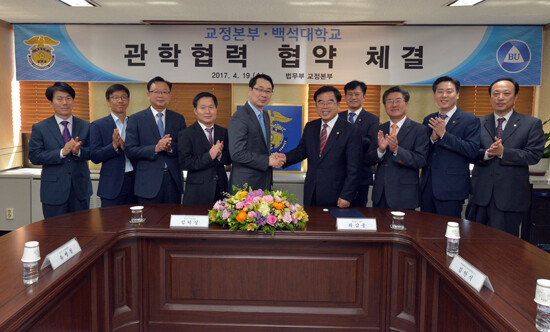 [대학저널 이희재 기자] 백석대학교(총장 최갑종)는 지난 19일 오전 11시 정부과천청사에서 법무부 교정본부(본부장 김학성)와 관학협력 협약을 체결했다.