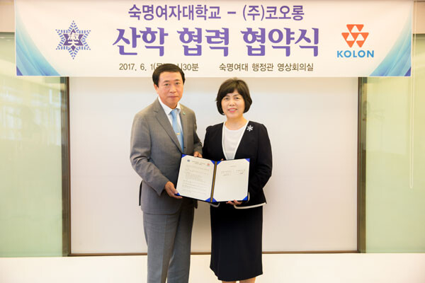 [대학저널 신효송 기자] 숙명여자대학교(총장 강정애)와 (주)코오롱이 1일 숙명여대 행정관에서 산학협력 협약식을 가졌다.