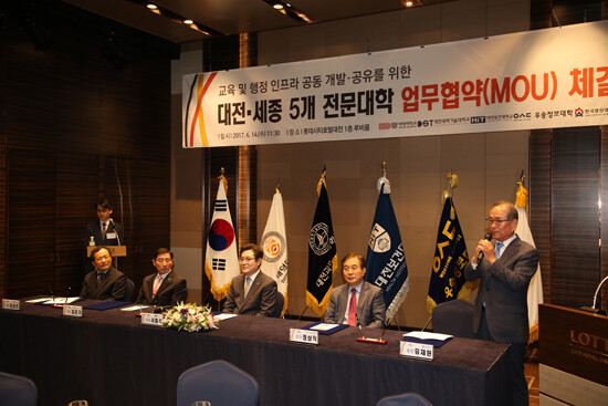 한국영상대를 비롯해 대덕대, 대전과학기술대, 대전보건대, 우송정보대학 등 대전·세종지역 5개 전문대학은 지난 14일 롯데시티 호텔대전 1층 루비룸에서 교육 및 행정 인프라 교류를 위한 업무협약(MOU)을 체결했다.