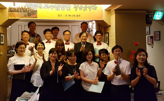 [대학저널 최창식 기자] 세종대, 세종사이버대(총장 신구) 교수합창단이 지난 20일 오후 6시 르 빠니에 블루에서 지역주민을 위한 작은 음악회를 개최했다.