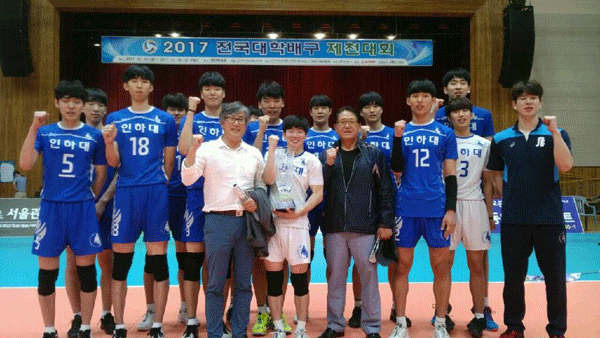 [대학저널 신효송 기자] 인하대학교(총장 최순자) 배구부가 지난 6월 30일 충북 제천체육관에서 열린 2017 전국대학배구 제천대회 결승전에서 홍익대를 꺾고 우승을 차지했다.