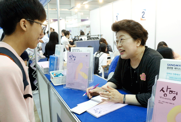 [대학저널 신효송 기자] 상명대학교(총장 구기헌) 김종희 행정대외부총장이 28일 서울 삼성동 코엑스 A홀에서 진행되고 있는 '2018 수시 대학입학정보박람회'를 방문했다. 김 부총장은 관계자 및 행사에 참석한 재학생들을 격려했다. 특히 부총장이 직접 상담에 참여해 학부모와 수험생들을 상담하면서 입학 시 우수한 인재로 만들어 줄 것을 약속했다.