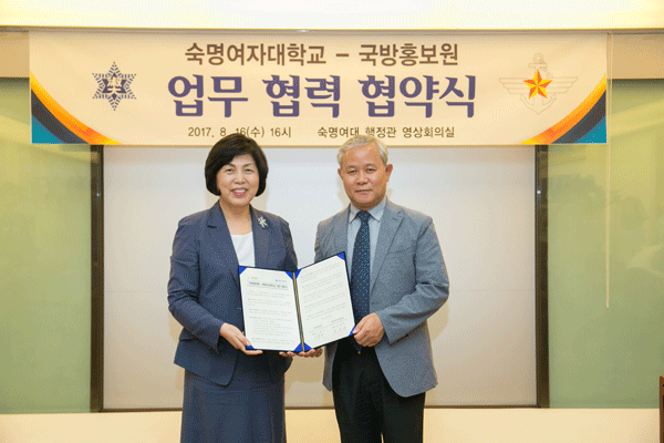 [대학저널 신효송 기자] 숙명여자대학교(총장 강정애)와 국방홍보원(원장 이붕우)이 지난 16일 숙명여대에서 업무협약을 체결했다.