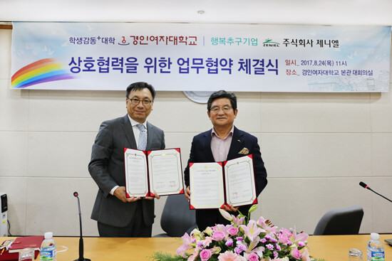 [대학저널 유제민 기자] 경인여자대학교(총장 김길자)와 (주)제니엘이 24일 경인여대 본관 대회의실에서 협약을 체결했다.