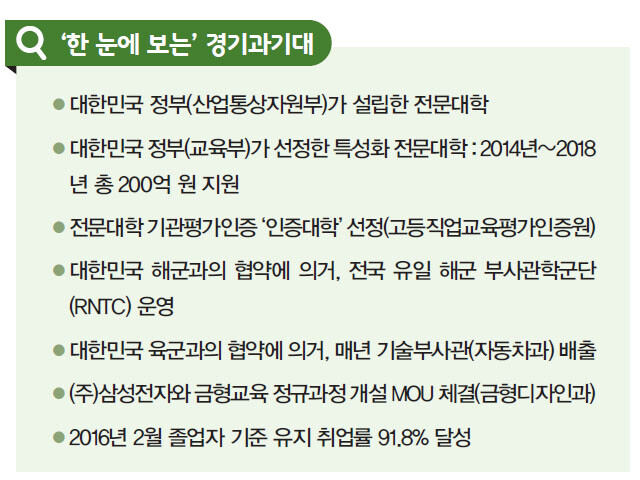 [대학저널 정성민 기자] 전문대학 대표 특성화 학과를 꼽으라면 단언컨대 경기과학기술대학교 정밀기계과다. 국내 유일 정밀측정 분야 특성화학과로서 취업률과 자격증 취득이 최상위 수준을 자랑하기 때문이다. 이에 경기과기대 정밀기계과는 정밀측정 분야 진출의 지름길로 통한다. 조창희 경기과기대 정밀기계과 학과장은 “국내 최고 수준의 정밀측정 장비들을 보유하고 있다. 정밀측정, 품질관리, 기계설계 교육을 통해 21세기 첨단산업을 이끌어 갈 정밀기계 엔지니어를 양성하고 있다”고 강조했다.