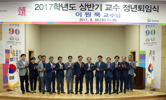 이날 퇴임식에는 가족·친지를 비롯해 한밭대 송하영 총장과 보직교수 등 대학 교직원, 제자 등 100여 명이 참석해 명예로운 정년퇴임을 축하했다. 또한 이 前 총장에게는 황조근정훈장이 전수됐다.