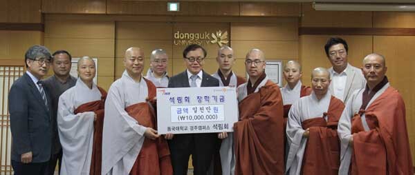 [대학저널 박용우 기자]동국대학교 경주캠퍼스 석림회 스님들이 지난 12일 오전 10시 교내 백주년기념관 화백홀에서 장학기금 1000만 원을 기부했다. 석림회는 동국대 경주캠퍼스에 재학 중인 스님들의 단체이다.