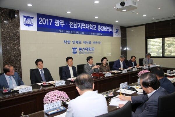 [대학저널 박용우 기자] 2017년 제4차 광주‧전남지역대학교총장협의회(회장 목포대학교 최일 총장)가 21일 오전 11시 동신대 중앙도서관 1층 세미나실에서 개최됐다.